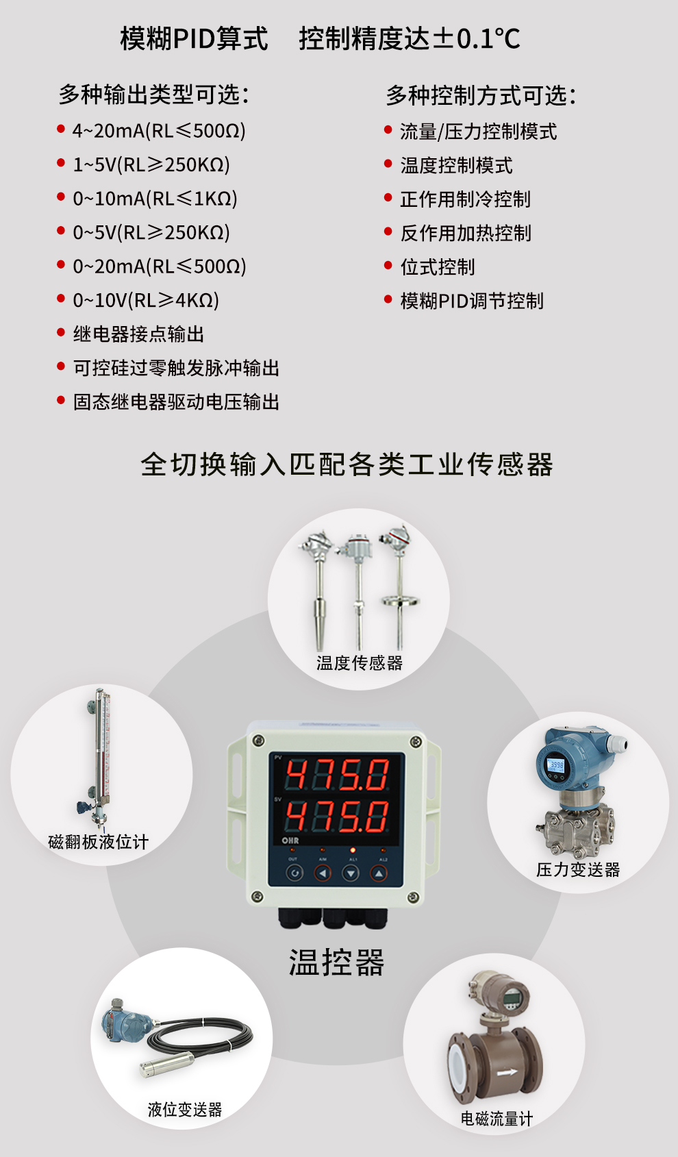 虹潤公司是專業(yè)生產(chǎn)溫控器的國家專精特新“小巨人”企業(yè)。生產(chǎn)的壁掛式PID溫控器,具有全切換信號輸入,真正人工智能算式,控制精度達(dá)士0.1°C,防護(hù)等級高,RS485通訊輸出DN等特點。產(chǎn)品獲得模糊PID控制儀及控制方法、人工智能調(diào)節(jié)器、智能化控制器、移相觸發(fā)控制器、閥門自動手動無擾動操作控制方法及裝置等5項國家發(fā)明專利,主持起草主持起草工業(yè)過程控制系統(tǒng)用模擬輸入兩位或多位輸出儀表、物聯(lián)網(wǎng)智能溫度儀表通用技術(shù)條件、工業(yè)過程測量和控制系統(tǒng)用智能調(diào)節(jié)器等3項國家標(biāo)準(zhǔn),以及通信系統(tǒng)多通道數(shù)據(jù)采集控制終端規(guī)范軍用標(biāo)準(zhǔn)。參與國際5G標(biāo)準(zhǔn)制定,取得傻瓜式PID調(diào)節(jié)儀等3項相關(guān)軟件著作權(quán)。產(chǎn)品廣泛應(yīng)用于電力、石化,冶金、制藥、食品等幾乎所有工業(yè)現(xiàn)場,實現(xiàn)精準(zhǔn)控溫,保障生產(chǎn)安全與質(zhì)量。