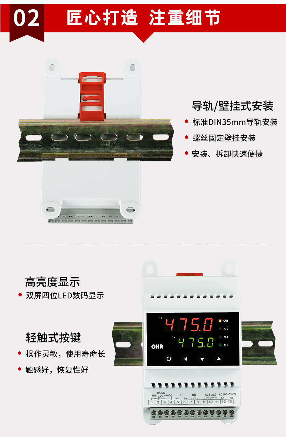 虹潤公司是專業(yè)生產(chǎn)溫控器的國家專精特新“小巨人”企業(yè)。生產(chǎn)的導(dǎo)軌式智能溫控器,具有傻瓜式操作,真正人工智能算式,控制精度達士0.1°C,導(dǎo)軌壁掛共用等特點。產(chǎn)品獲得模糊PID控制儀及控制方法、人工智能調(diào)節(jié)器、智能化控制器、移相觸發(fā)控制器、閥門自動手動無擾動操作控制方法及裝置等5項國家發(fā)明專利,主持起草主持起草工業(yè)過程控制系統(tǒng)用模擬輸入兩位或多位輸出儀表、物聯(lián)網(wǎng)智能溫度儀表通用技術(shù)條件、工業(yè)過程測量和控制系統(tǒng)用智能調(diào)節(jié)器等3項國家標準,以及通信系統(tǒng)多通道數(shù)據(jù)采集控制終端規(guī)范軍用標準。參與國際5G標準制定,取得傻瓜式PID調(diào)節(jié)儀等3項相關(guān)軟件著作權(quán)。產(chǎn)品廣泛應(yīng)用于電力、石化,冶金、制藥、食品等幾乎所有工業(yè)現(xiàn)場,實現(xiàn)精準控溫,保障生產(chǎn)安全與質(zhì)量。