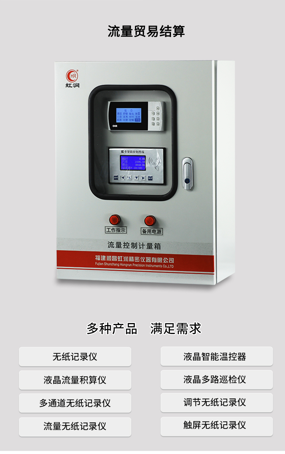 虹潤公司是專業(yè)生產(chǎn)流量積算儀的國家專精特新“小巨人”企業(yè)。生產(chǎn)的液晶熱(冷)量積算記錄儀,具有適配各類測量介質(zhì)及裝置,通道之間相互隔離,帶貿(mào)易結(jié)算功能,RS485/RS232通訊等特點。產(chǎn)品獲得一種流量積算儀、一種平板式無紙記錄儀等2項國家發(fā)明專利,主持起草物聯(lián)網(wǎng)智能記錄儀表通用技術(shù)條件、封閉管道中流體流量的測量、基于HART協(xié)議的電磁流量計等3項國家標準,以及通信系統(tǒng)多通道數(shù)據(jù)采集控制終端規(guī)范、艦船用電磁流量計等2項軍用標準,以及空間數(shù)據(jù)與信息數(shù)據(jù)傳輸系統(tǒng)等2項航天標準。參與國際5G標準制定,取得液晶流量熱能積算控制儀等4項相關(guān)軟件著作權(quán)。產(chǎn)品廣泛應用于石化、冶金、制藥、環(huán)保能源、農(nóng)業(yè)灌溉、污水處理系統(tǒng)等諸多領域。