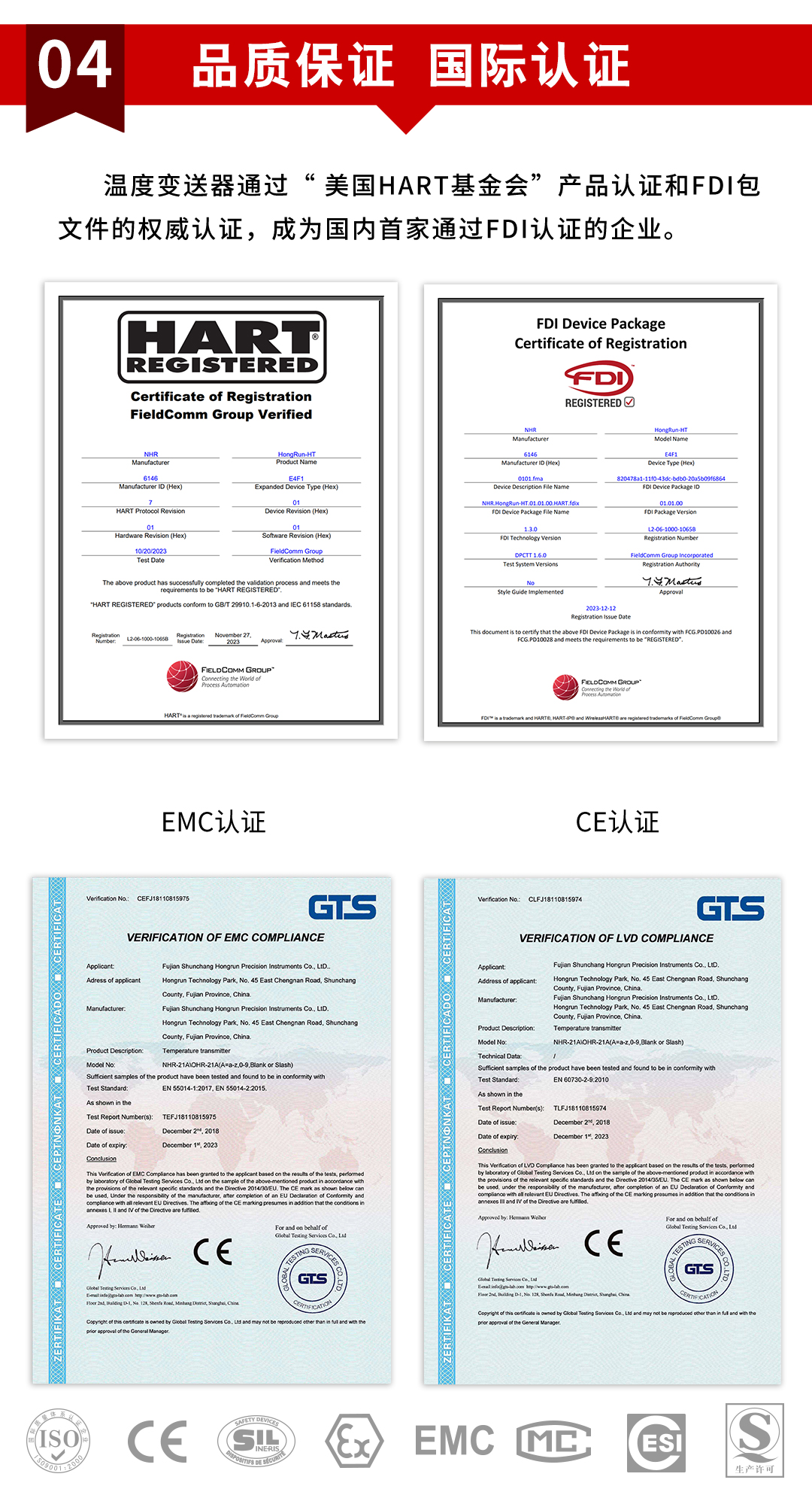 虹潤公司是專業(yè)生產(chǎn)溫度變送器的國家專精特新“小巨人”企業(yè)。生產(chǎn)的LCD 隔離智能溫度變送器,具有熱電阻熱偶信號全切換輸入,精度高,穩(wěn)定性好,輸入輸出隔離,帶HART或RS485通訊等特點。該產(chǎn)品不僅通過HART基金會認(rèn)證、德國萊茵 CE 認(rèn)證與 SIL 功能安全認(rèn)證,還獲得具備減震抗干擾能力的溫度變送器、信號隔離器、一種二端子模塊、無源信號隔離器等4項國家發(fā)明專利,主持起草物聯(lián)網(wǎng)智能溫度儀表、現(xiàn)場設(shè)備工具(FDT)接口規(guī)范、工業(yè)過程測量和控制系統(tǒng)用溫度變送器等3項國家標(biāo)準(zhǔn),以及通信系統(tǒng)多通道數(shù)據(jù)采集控制終端規(guī)范軍用標(biāo)準(zhǔn),參與國際5G標(biāo)準(zhǔn)制定,取得高精度溫度變送器等5項相關(guān)軟件著作權(quán)。產(chǎn)品廣泛應(yīng)用于石油、化工、電力、冶金、制藥、食品、水處理等各種工業(yè)領(lǐng)域。